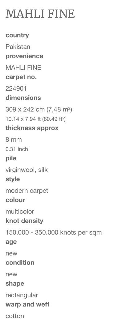 GENUINE HAND KNOTTED “MAHLI FINE “CARPET , From Pakistan.