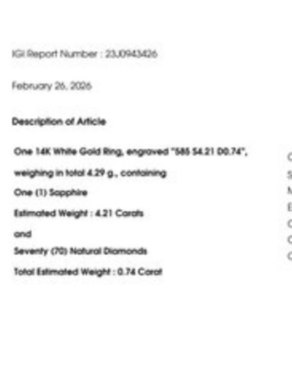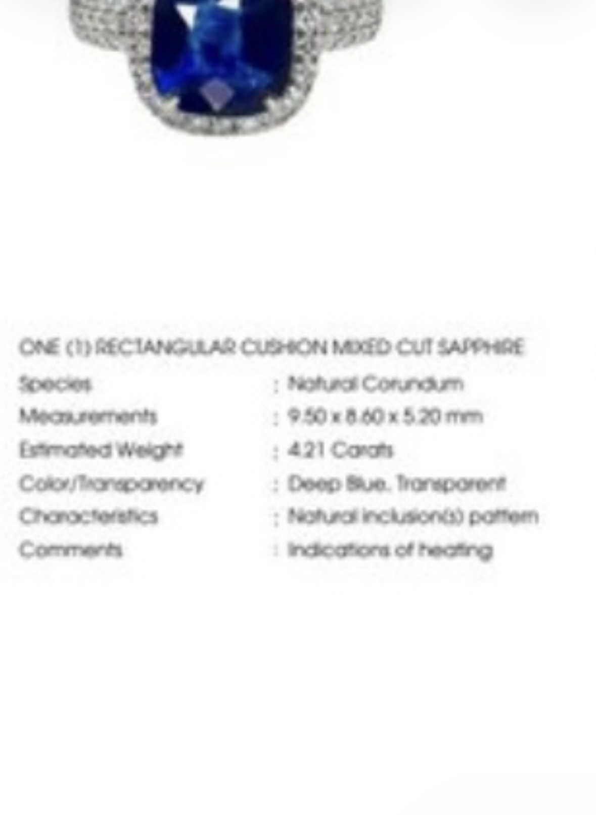 Main Stone: Natural Sapphire 4.21 Carat.